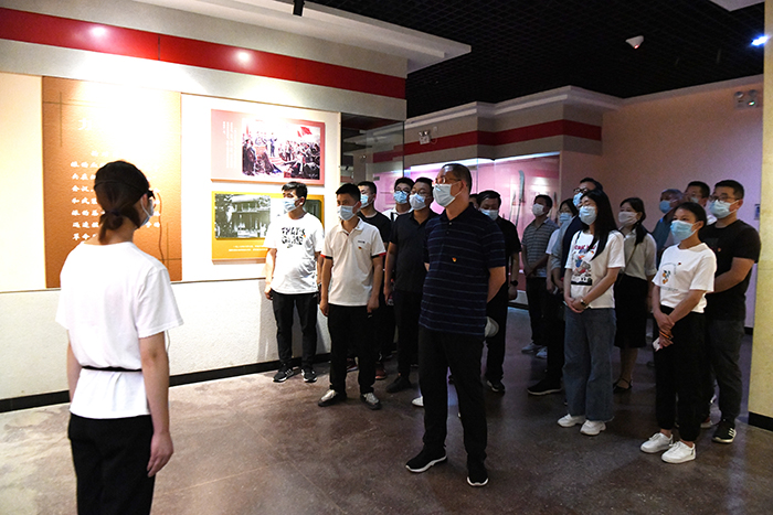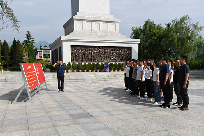 來(lái)到渭華起義烈士紀(jì)念碑前,全體黨員、入黨積極分子在總支紀(jì)檢委員陳波同志的帶領(lǐng)下緬懷革命先烈,回顧黨的光輝歷程。黨員們高舉右拳,重溫入黨誓詞,用高昂而莊嚴(yán)的誓詞表達(dá)對(duì)黨的忠誠(chéng)和熱愛(ài),接受紅色文化的教育和洗禮。