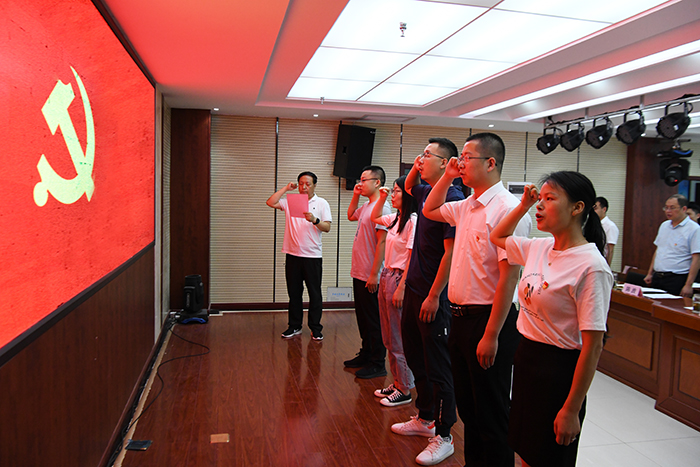 其次舉行了優(yōu)秀黨員表彰和新入黨預(yù)備黨員宣誓活動(dòng)。總支組織委員南春鋒同志宣讀了市國(guó)資委黨委關(guān)于6名預(yù)備黨員的批復(fù),總支紀(jì)檢委員、副總經(jīng)理陳波同志宣讀了黨總支關(guān)于表彰優(yōu)秀黨員的決定。在總支組織委員南春鋒同志的領(lǐng)誓下,6名預(yù)備黨員面對(duì)黨旗,莊嚴(yán)宣誓,之后,預(yù)備黨員代表作了大會(huì)表態(tài)發(fā)言。