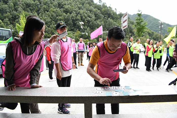 19日上午,全體黨員、員工首先乘車來到終南山拓展基地,集體參加了“凝心聚力”拓展訓(xùn)練。53名學(xué)員分別組成雲(yún)漢隊(duì)和雄鷹隊(duì),兩隊(duì)集思廣益,各自形成隊(duì)名、隊(duì)旗、口號(hào)及隊(duì)歌并一一展示。在“達(dá)芬奇密碼”拓展項(xiàng)目中,大家充分發(fā)揮團(tuán)隊(duì)力量,隊(duì)友間相互信任、不斷嘗試、在反復(fù)摸索和密切協(xié)作下,最終雄鷹隊(duì)以3比2獲勝。充分展現(xiàn)了城投人永不言棄、進(jìn)無止境的團(tuán)隊(duì)精神。