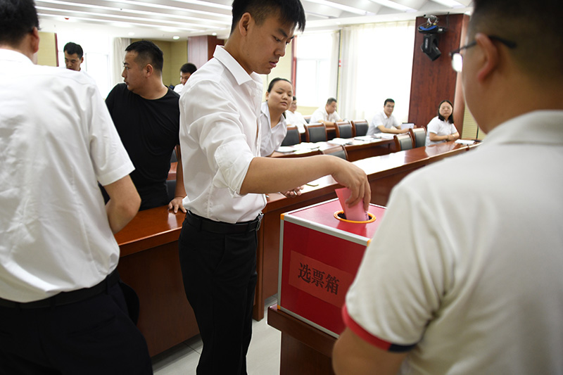 7月15日上午,共青團商洛市城投公司支部委員會換屆選舉大會在五樓會議室召開。大會由黨總支紀檢委員、副總經理陳波主持,黨總支副書記、總經理王昱智出席本次大會,會議應到團員21人,實際到會19人。