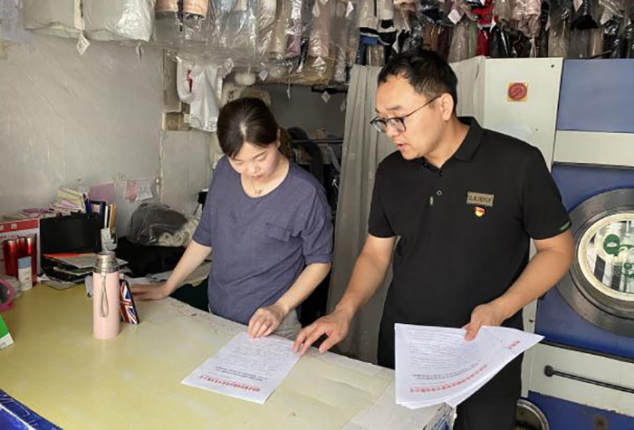 保障房支部書(shū)記王斐同志和宣傳委員李瑤同志上門為租戶們分發(fā)《關(guān)于進(jìn)一步做好安全生產(chǎn)經(jīng)營(yíng)工作的通知》,叮囑每戶務(wù)必配備滅火器,對(duì)接觸不良、老化的線路、超負(fù)荷的電器及時(shí)更換,對(duì)設(shè)計(jì)餐飲的租戶必須定期檢查煤氣罐、灶、軟管是否完好,嚴(yán)格落實(shí)用火、用電、用油、用氣的防火安全管理制度。