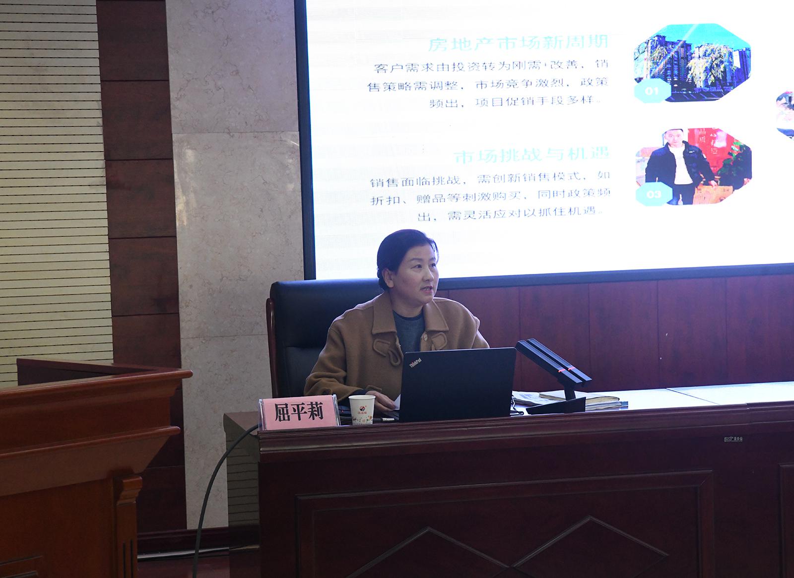 12月13日,市城投公司黨委舉辦第八期“城投大講堂”。商洛丹鶴春曉房產(chǎn)經(jīng)紀管理有限公司經(jīng)理屈平莉以“國有房企從業(yè)者如何塑造品牌營銷力”為題,結合房產(chǎn)經(jīng)紀公司實際,生動形象地講授了房地產(chǎn)行業(yè)現(xiàn)狀、政策及銷售技巧,使大家有了更加全面、深刻的認識。